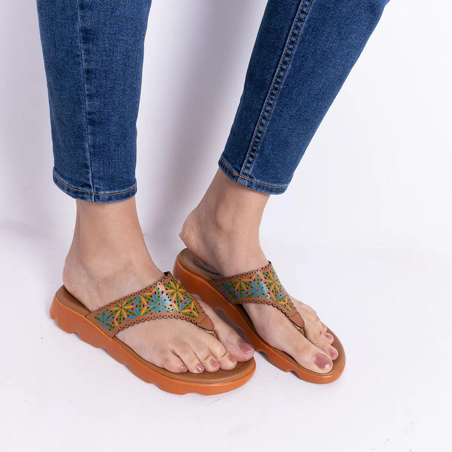 Medifeet V-Strap Floral Women Slipper Ortho Friendly with Flatfoot Arch Support